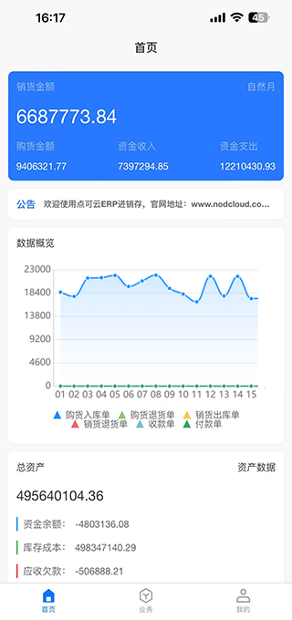 对生产经营中购货、销货、库存、资金等多维度业务环节进行全程跟踪管理,帮助管理者及时了解各业务流程细节。