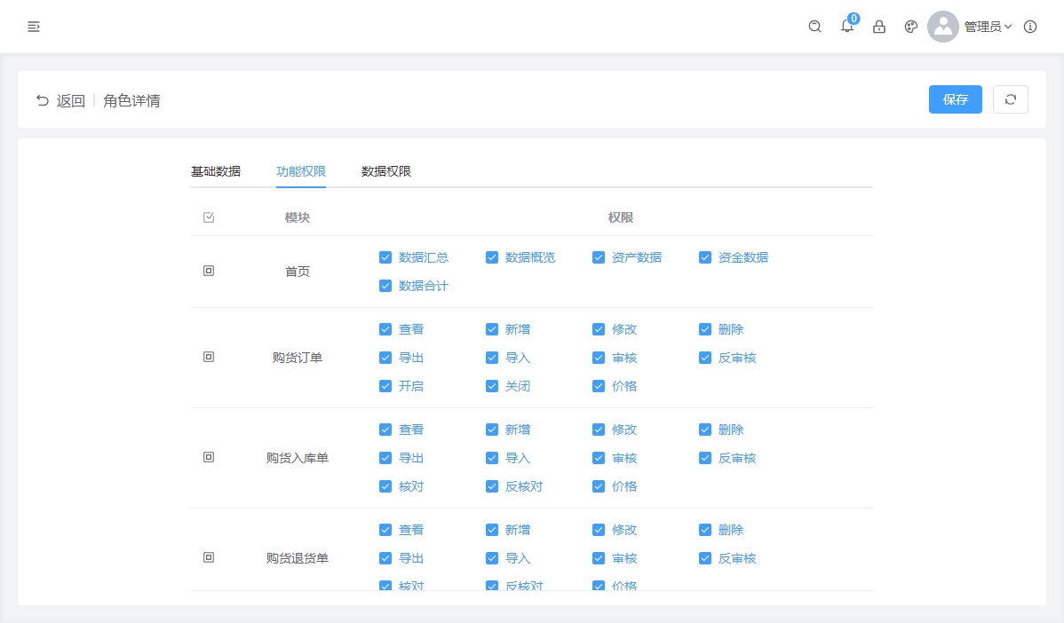 支持按不同用户角色配置功能模块与数据权限,安全管控业务数据。